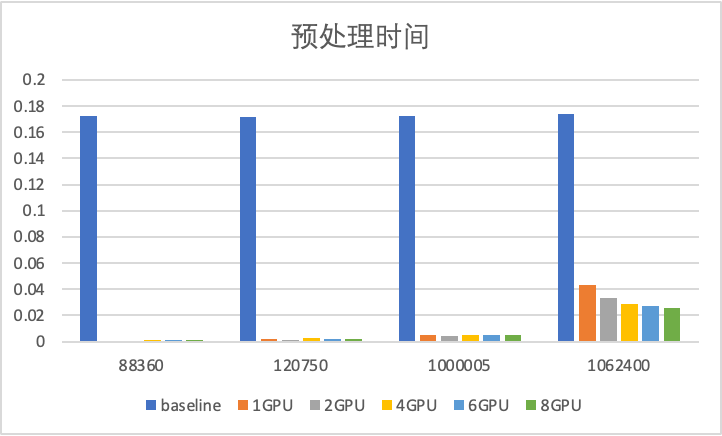 而且更多的GPU数目并没有带来更多的预处理开销。